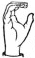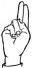 На ћирилици написано МИНА СЕКИЦКИ састоји се из 11 слова [?]. Исписано ћириличном једноручном азбуком за глувонеме: